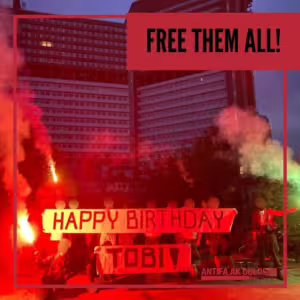 Seit einem halben Jahr sitzt Tobi in Burg in Haft. Bereits zuvor hatte er eine zweijährige Haft in Budapest unter schlimmsten Bedingungen abgesessen. Unter fadenscheinigen Begründungen wurde Tobi in Deutschland direkt wieder in U-Haft gesteckt. Ihm wird dazu bisher kein konkreter Vorwurf genannt, außer dass er als Teil der vermeintlichen Vereinigung „Antifa Ost“ sein soll. Gleichzeitig ist die Situation anderer Angeklagter im „Budapest Komplex“ weiterhin schrecklich. So ist Maja immer noch unmenschliche Haftbedingungen ausgesetzt und auch Zaid droht weiterhin die Abschiebung. Wir dürfen nicht schweigen und weiterhin für unsere Genoss*innen kämpfen.